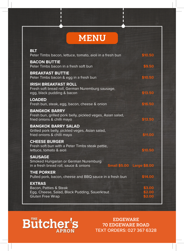 The Butcher's Apron - Edgeware Menu